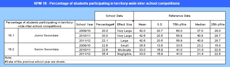 KPM18_Percentage of students participating in territory-wide system inter-schools competition