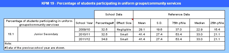 KPM19_ Percentage of students participating in uniform groups/ social and voluntary services